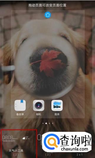 可以看到手机桌面上没有天气和时间显示,长按桌面上方的空白处。