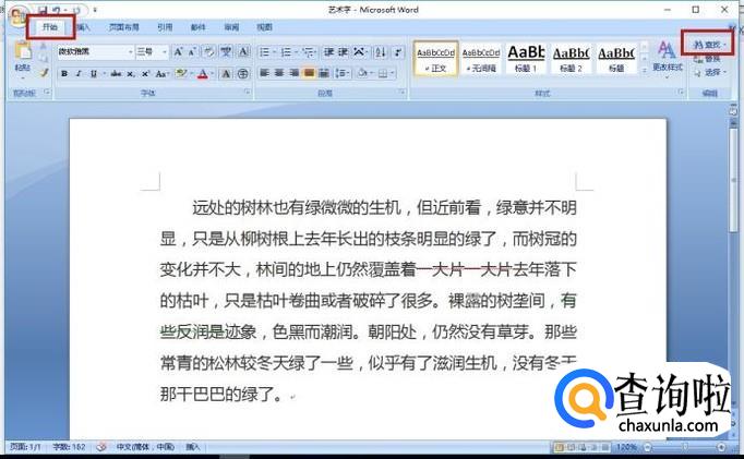 在“开始“菜单中,点击”查找“按钮,或者直接按”Ctrl+F"。