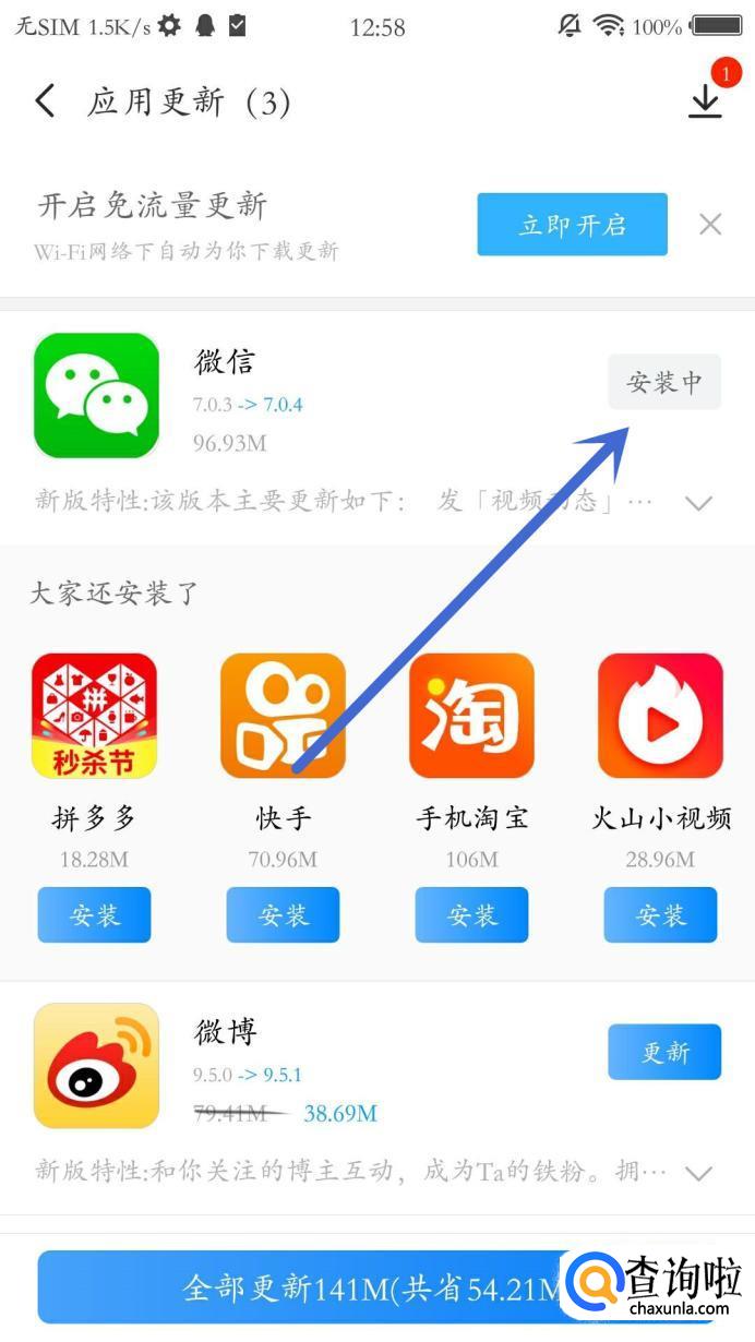 下载完成之后,应用商店会自动将其安装,安装完成即可更新到最新版,如图所示。