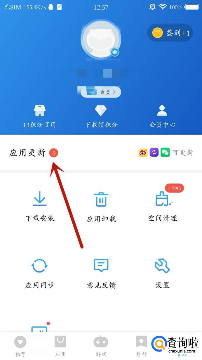 在手机应用商店的管理页面,点击“应用更新”,如图所示。