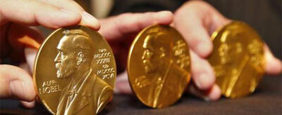 诺贝尔奖(瑞典语:Nobel priset,英语:Nobel Prize)是指根据诺贝尔1895年的遗嘱而设立的五个奖项,包括:物理学奖、化学奖、和平奖、生理学或医学奖和文学奖,旨在表彰在物理学、化学、和平、生理学或医学以及文学上“对人类作出最大贡献”的人士;以及瑞典中央银行1968年设立的诺贝尔经济学奖,用于表彰在经济学领域杰出贡献的人 。