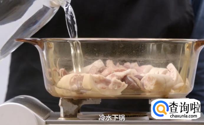 首先,把鸭胗的筋膜去掉,再将切块的猪手和鸭舌洗干净,所有食材一起冷水下锅。水沸腾之后取出,洗干净食材上的血污。