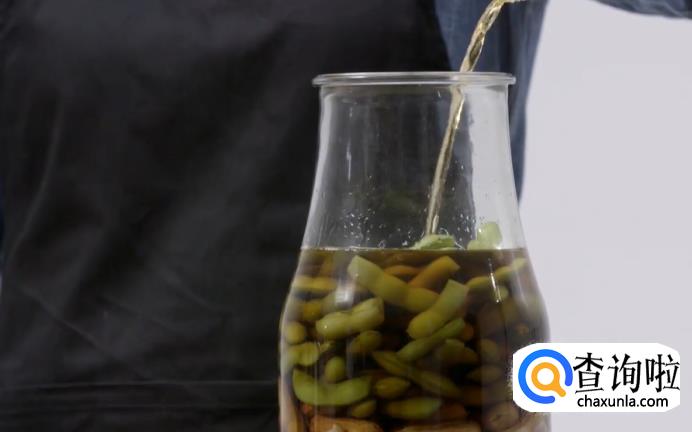 然后,将沥过水的毛豆花生放入罐中,倒入糟卤没过食材,盖上盖子,冷藏腌制30分钟即可。待腌制完成后就可以食用了。
