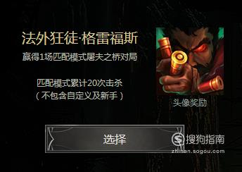 选择崔斯特或者格雷福斯中的一个完成任务,赢得头像奖励。我们选择法外狂徒作为英雄。