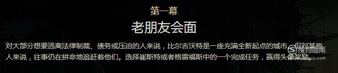 看到第一幕事件说明。对大部分想要逃离法律制裁、债务或压迫的人来说,比尔吉沃特是一座充满全 新起点的城市。但对某些人来说,往事仍在拼命地追赶着他们。