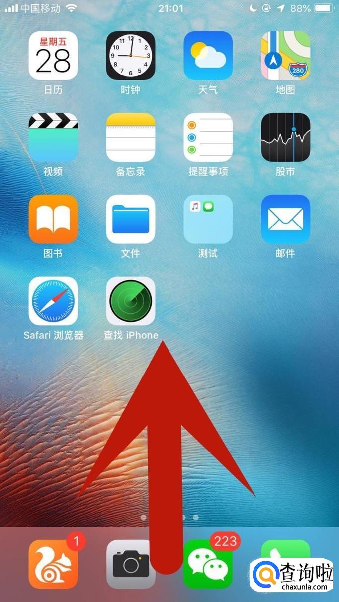 首先将我们的手机主屏幕往上滑动,如下图所示。