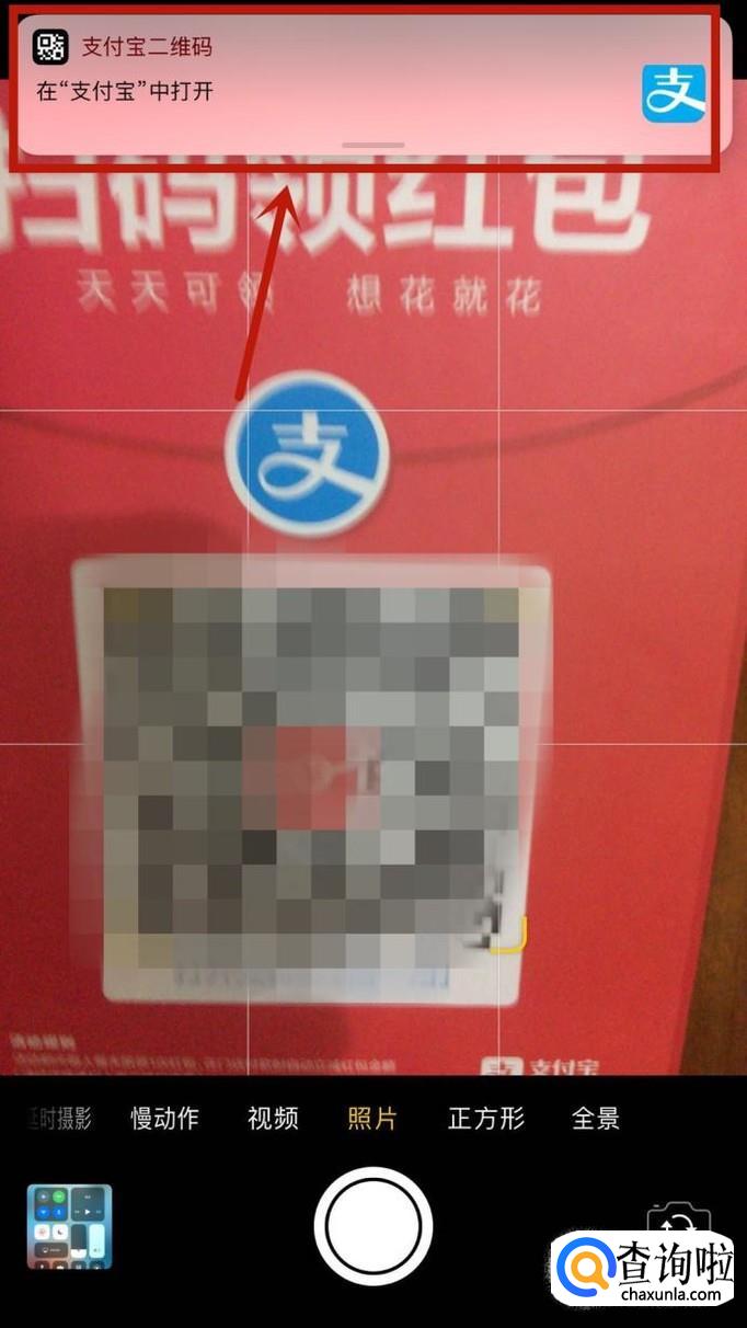 接着将我们的手机对着二维码并拍照,如下图所示。