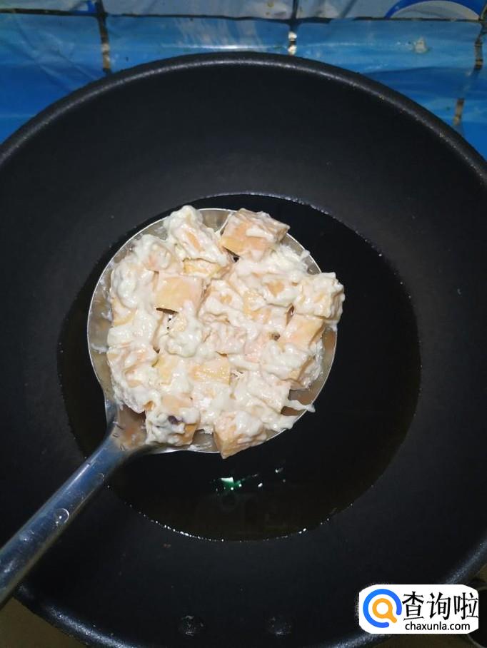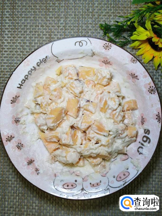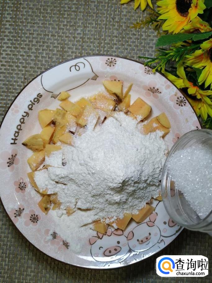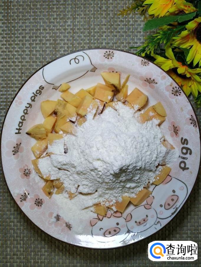 加入适量面粉,面粉的量要能够将红薯块裹住。