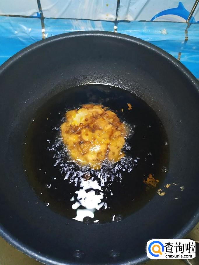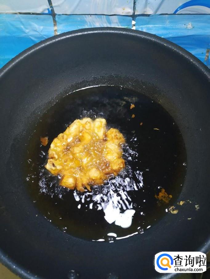 小火慢炸,炸至金黄,然后红薯饼会自然脱落出来,这个时候火千万不能大。