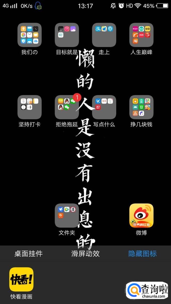 退出后,回到主界面,可以发现已经完成了隐藏图标。