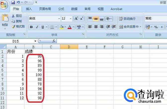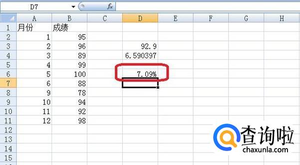任意打开一个Excel表格,输入一些数字(如以小明本年度月考成绩为例)。我们来计算他这些成绩的相对标准偏差。