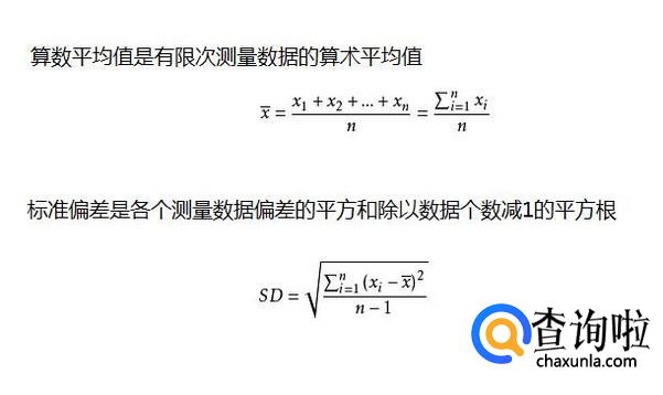 根据定义,我们需要分别计算这些数据的标准偏差(SD)和算术平均值(x),需要用到的函数分别是STDEV和AVERAGE。它们的公式用文字打不出来,我以图片的形式列出,您能看明白它们的含义。