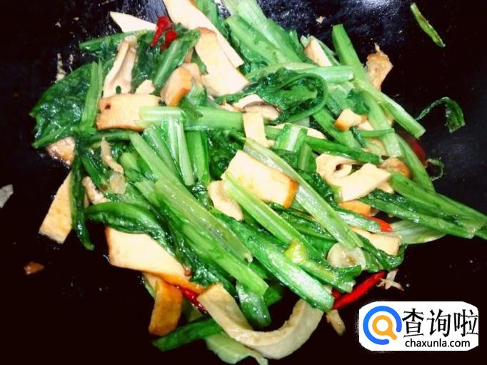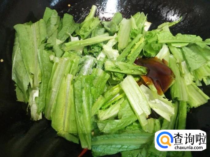 红干椒略翻炒一下,放入油麦菜翻炒,放入一匙儿蚝油,料酒,盐。炒至油麦菜断生,放入味精,关火出勺。