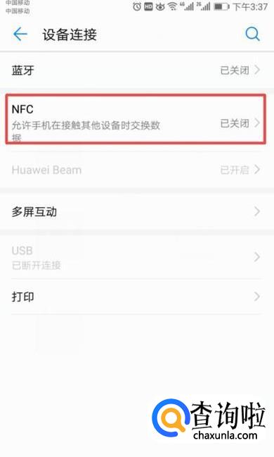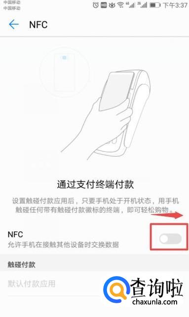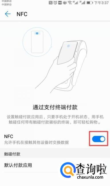 弹出的界面,我们将NFC功能开关向右滑动打开;