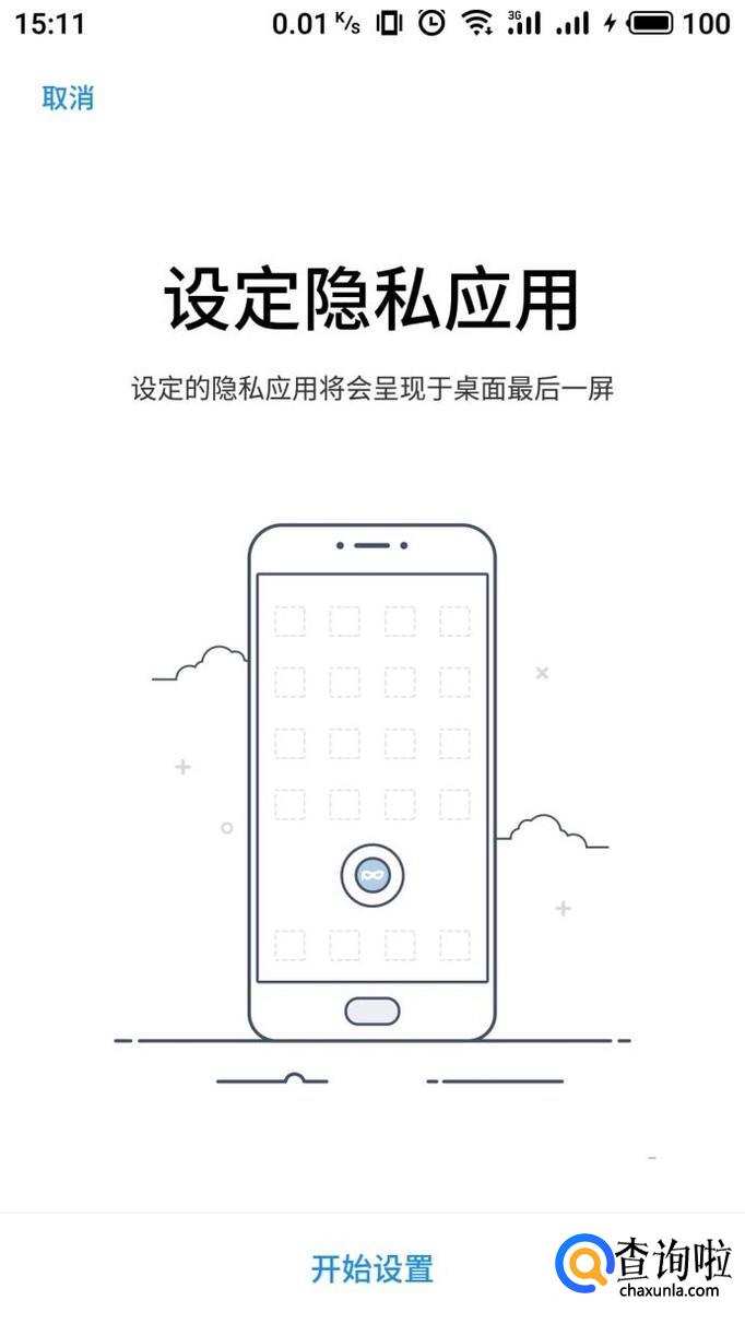 进入隐私应用界面即可查看隐私应用了,如果没有设置的话就会提示进行设定。