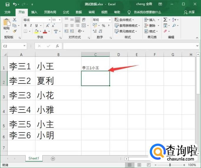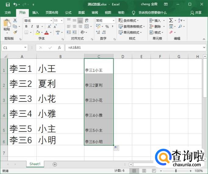 我们将光标定位在C1右下方,待变成十字形,往下拉,松开鼠标即可得到全部数据。