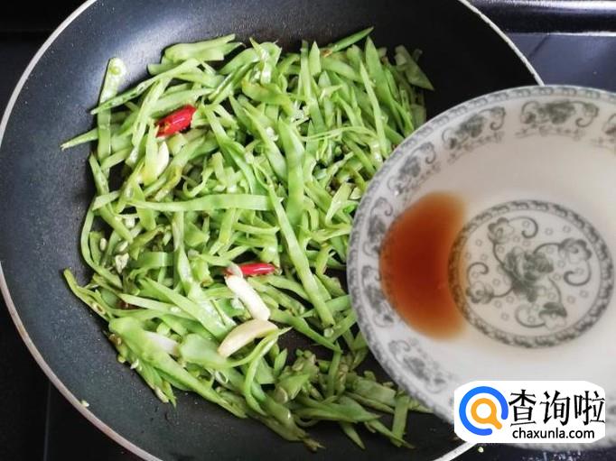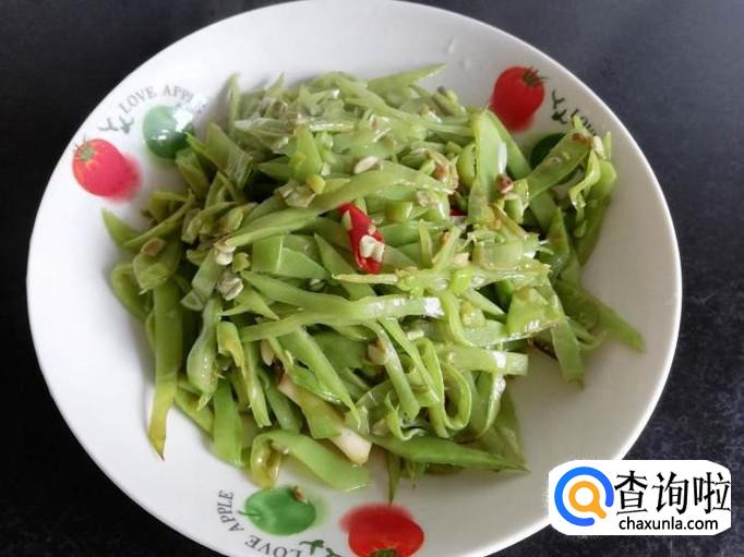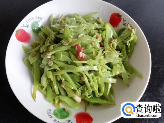 将买来的月亮菜撕筋,然后洗干净浸泡十分钟,挑选月亮菜时,月亮菜的豆子比较饱满的不要买,那样的月亮菜老了,口感不脆嫩