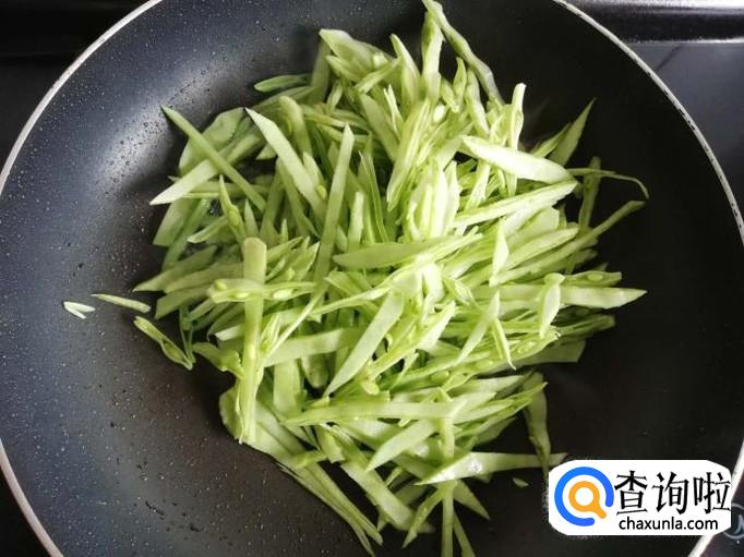 锅烧热,加入适量油,将月亮菜下入锅中,大火翻炒