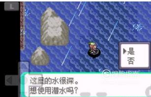 然后我们在深色海域的位置,可以使用潜水技能进去水下。在水下走半圈之后发现一个洞口,进去洞口里。