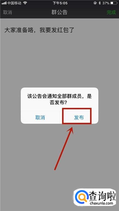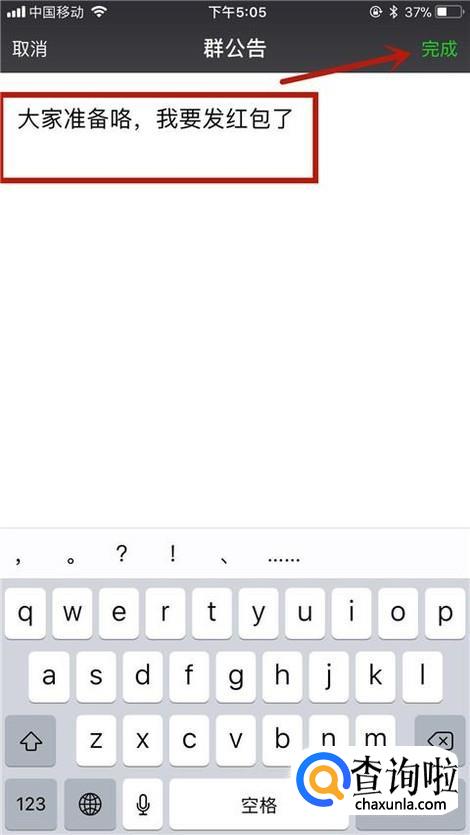 接着编辑你想@所有人的信息并点击完成,如下图所示。