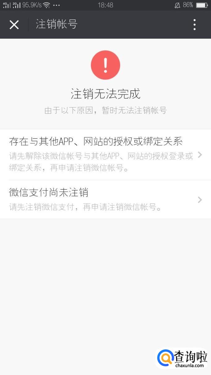 如果账号没有绑定任何银行卡或者帐户有钱,会直接注销成功,如果注销不成功,查看原因,解决这些问题就可以注销成功了。