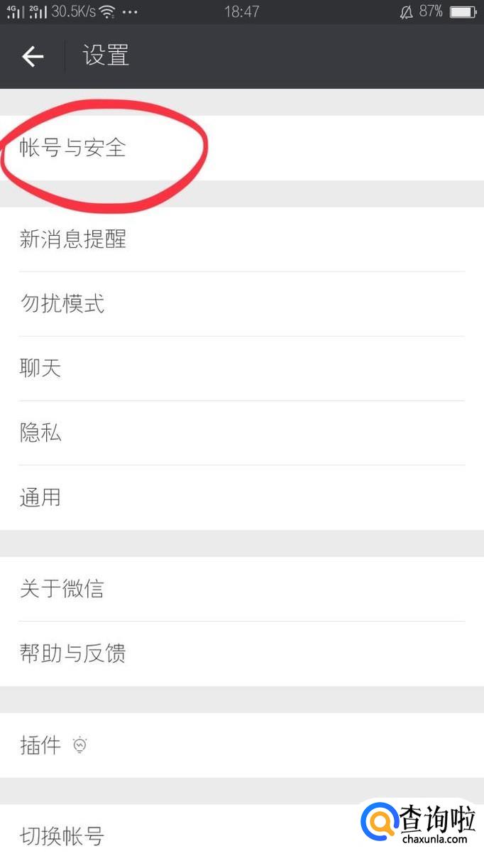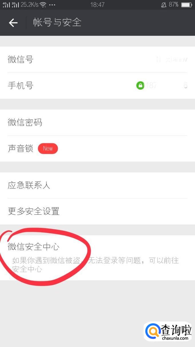 找到帐户与安全中的微信安全中心,如下图所示。