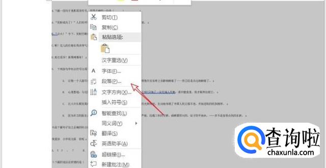 调整过后在页面中点击鼠标右键,在右键菜单面板中选择段落命令。如图所示: