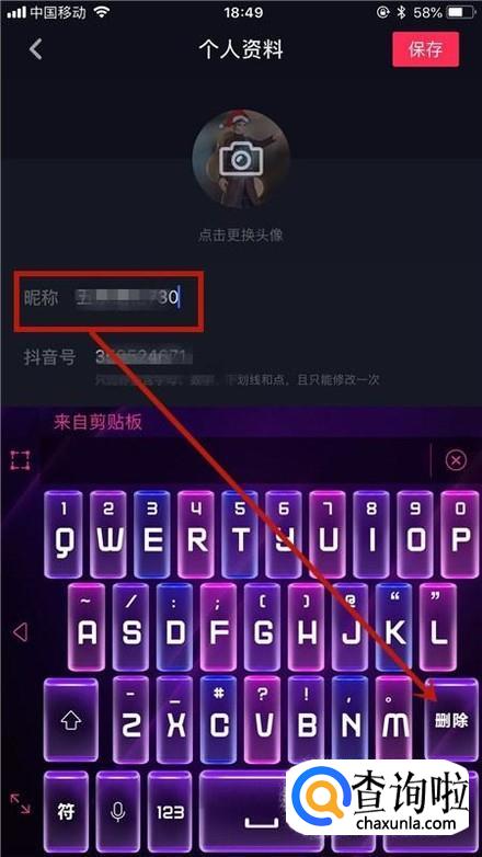 然后将我们原先的昵称删除,如下图所示。