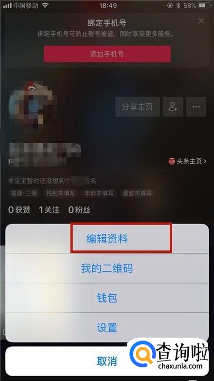 接着点击编辑资料,如下图所示。