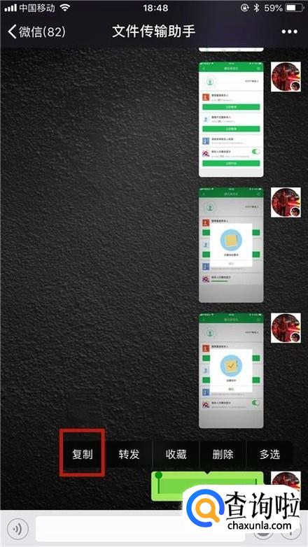 接着在手机微信中把这部分空白部分复制,如下图所示。