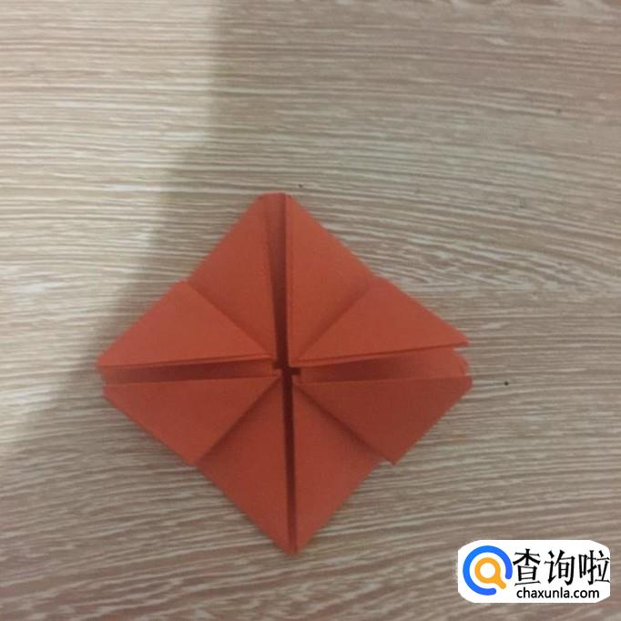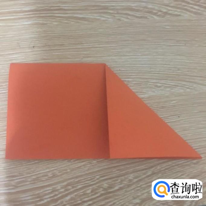 首先取一张正方形折纸沿对角线对折,如下图所示。