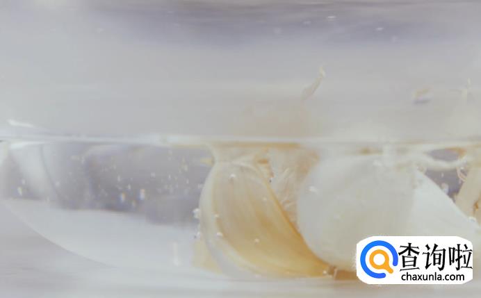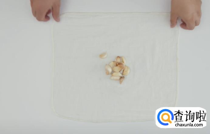 将泡好的蒜瓣放入纱布中包裹起来,反复揉搓。