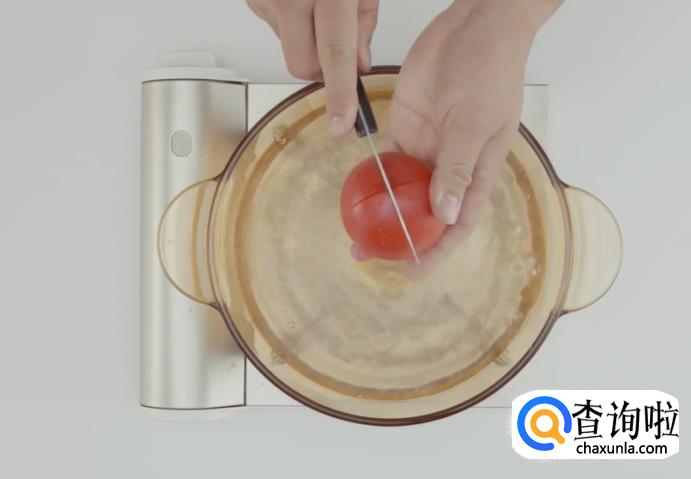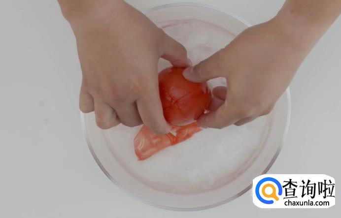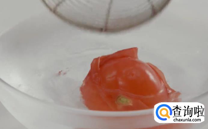 待3分钟后,将西红柿捞出来,浸泡在冰水里,即可轻松剥皮。