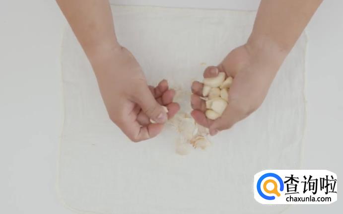 最后,打开纱布,将蒜瓣取出,这时蒜瓣的皮基本上已经松动甚至掉落,将剩余没掉落的皮剥掉即可。