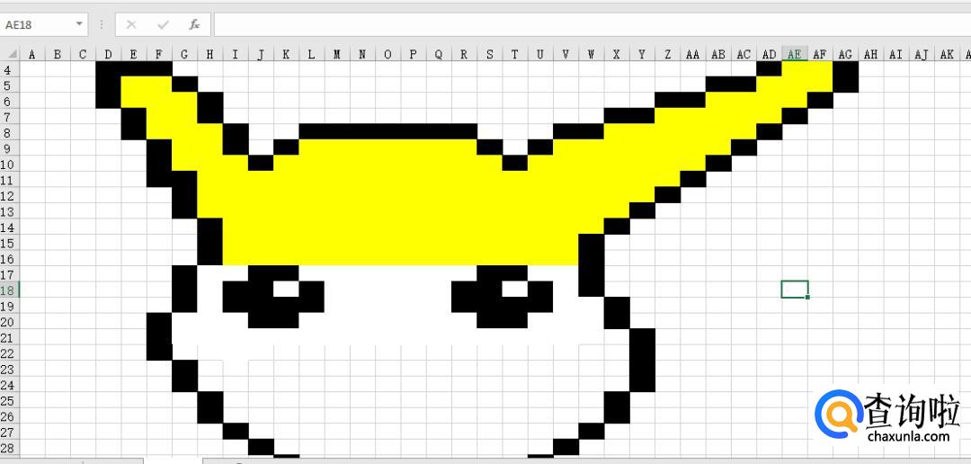同样的方法,填充单元格,画成皮卡丘脸型。