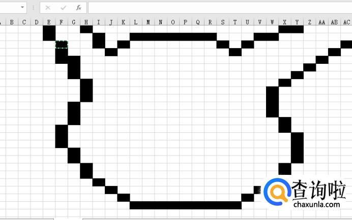 调节单元格列宽,这里我调节的是3像素。这样就成为一个像素画板了,然后将单元格设置成为黑色填充。做出皮卡丘耳朵的轮廓。