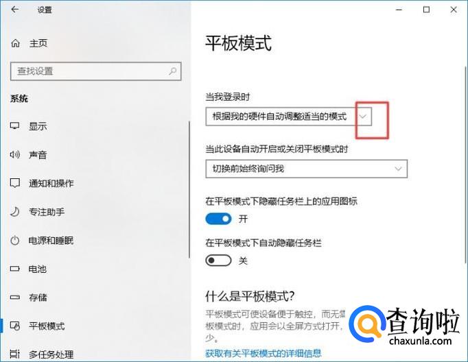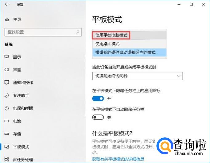 弹出的界面,我们点击平板模式;