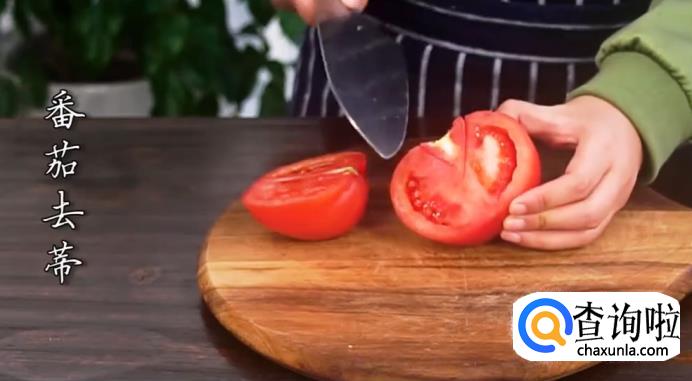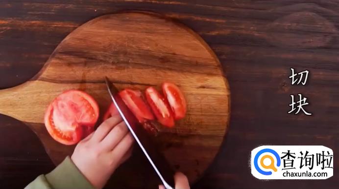 将番茄去蒂后切块;洋葱切末;大蒜切末;干辣椒剪段。