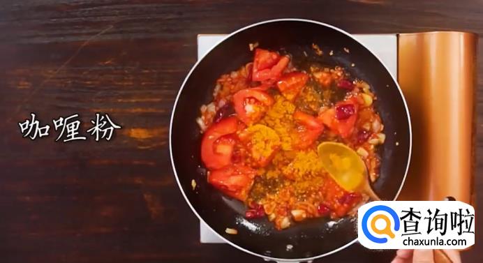 虾、番茄、番茄酱、洋葱、大蒜、干辣椒、橄榄油、咖喱粉、黑胡椒粉、食盐、欧芹