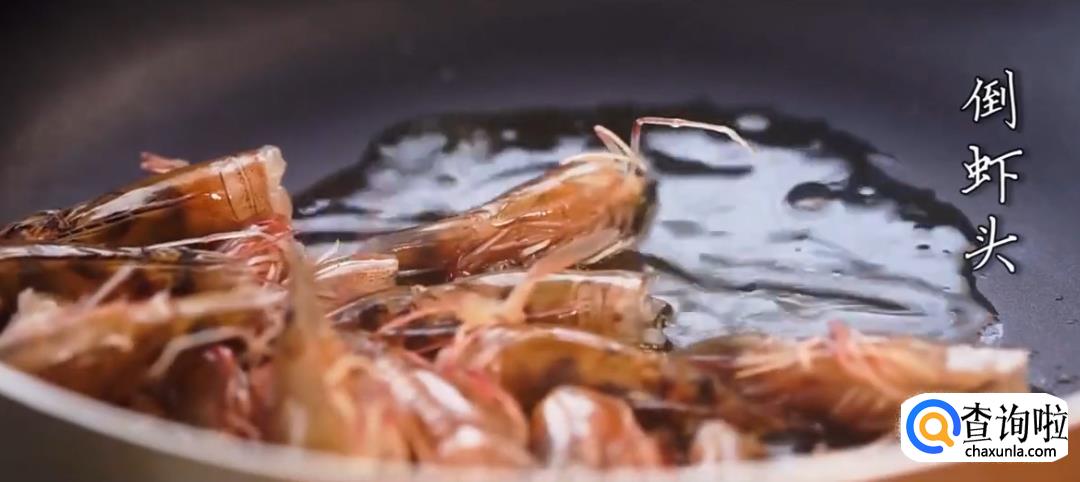 在锅中倒入适量橄榄油,油热后放入虾头,熬出虾油后,捞出虾头,锅中留虾油。