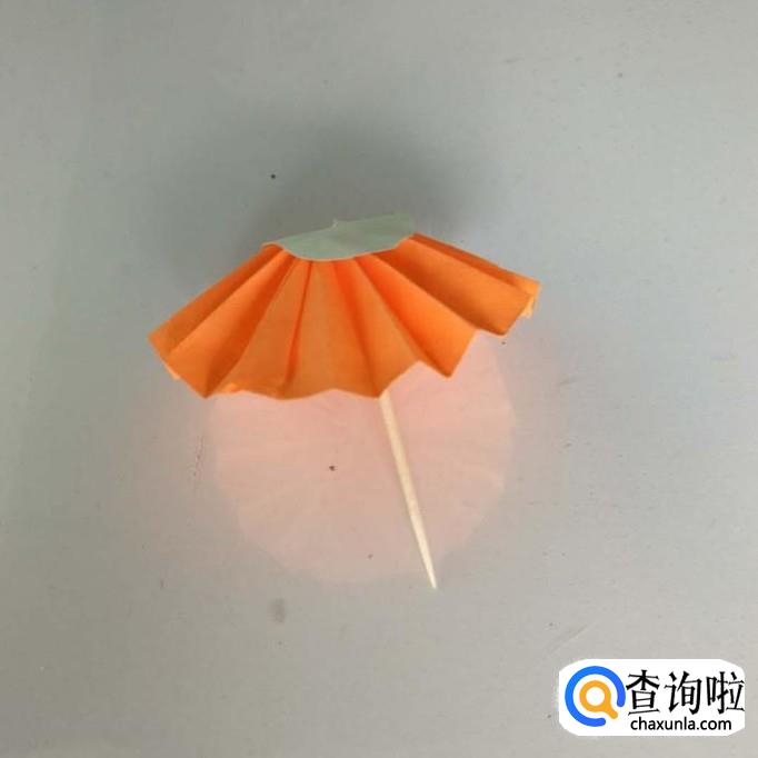 最后把牙签穿在小圆圈上,小雨伞就折好了。