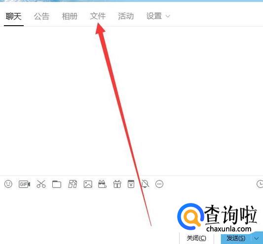 进入之后,打开想要下载群文件的QQ群,然后点击“文件”,如图所示。
