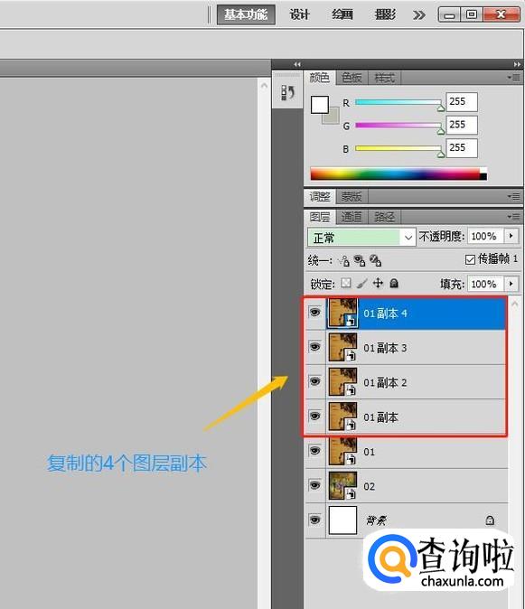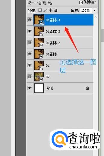接着我们对最上方的那张照片进行多次复制图层,复制的越多动态效果也越好,小编复制了4个图层出来,最下面的那张照片则没有必要复制图层哦;