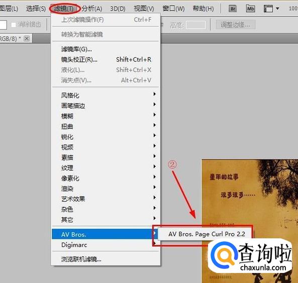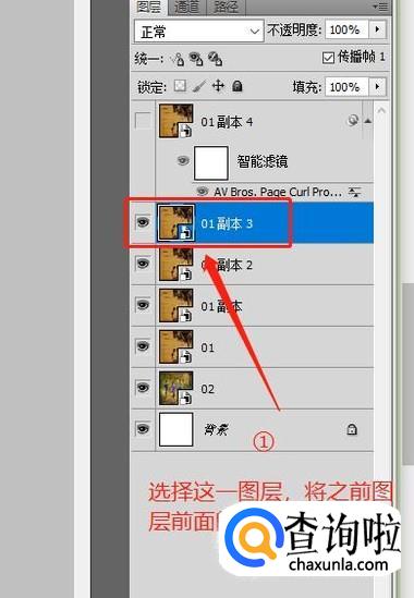 然后从上到下依次对这几个图层进行滤镜设置(我们需要事先安装卷页滤镜插件哦),小编在用的是AV Bros.page curl这款插件,大家如果没有安装的话可以通过搜狗去下载一个,很小的一个插件;