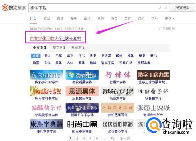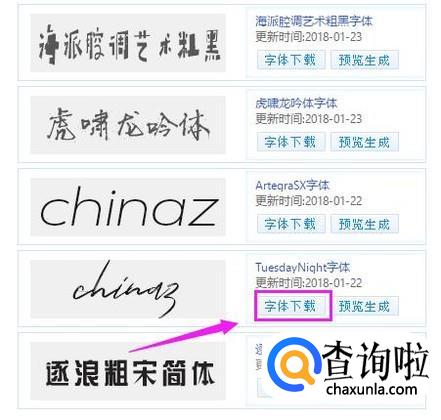 找到一款我们喜欢的字体,点击“字体下载”,如图所示。