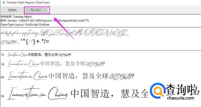等到安装字样变色,说明我们的电脑安装字体已经成功了,如图所示。