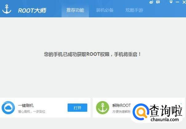 过几分钟之后,系统就会提示手机已经获得root特权,如图所示。