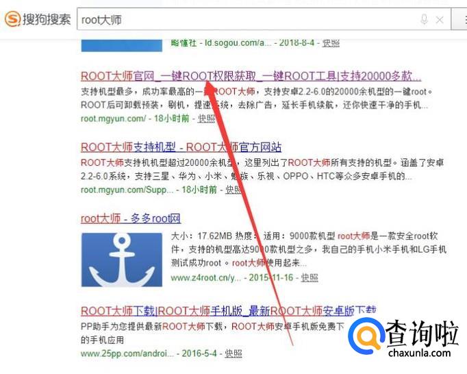 进入之后,搜索“root大师”,点击并进入,如图所示。