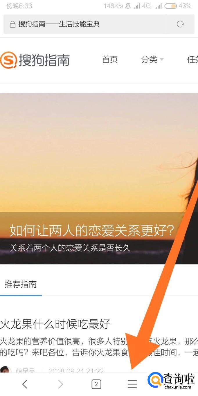 首先点击小米手机浏览器底部导航栏的菜单键。