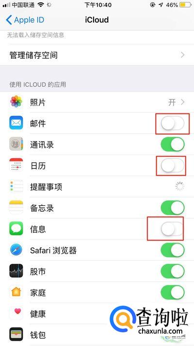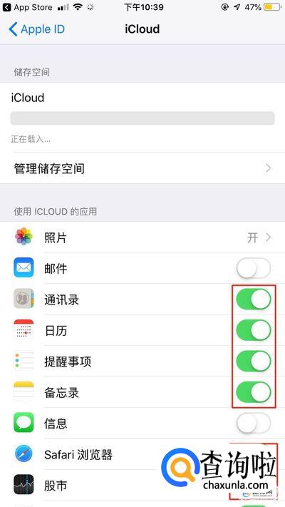 来到“iCloud”界面后,这里显示了本机所有数据和相关的内容,接着将我们想要上传到云端的数据后面的开关选项选择打开就可以了。